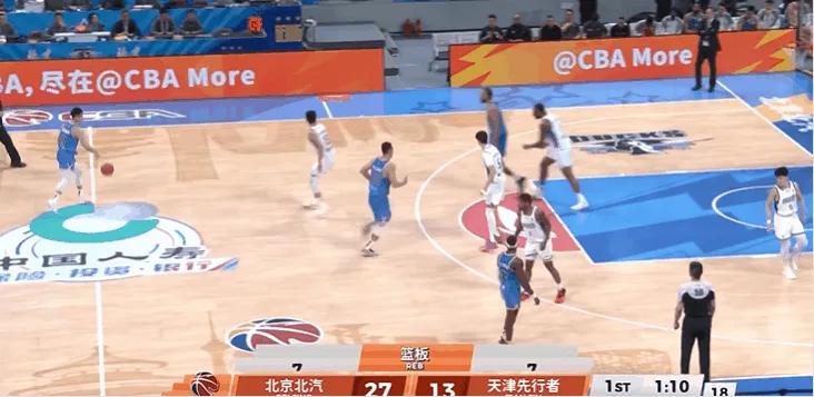 CBA常规赛:北京男篮对阵天津男篮的比赛正在进行中。